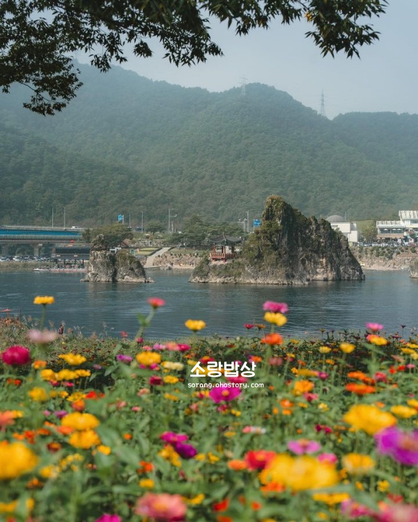 '단양팔경' 중 하나인 도담삼봉은 남한강 중앙의 하천에 남아 있던 석회암이 물에 침식되어 세 개의 봉우리가 된 것입니다. 도담삼봉 가운데 장군봉에는 삼도정이라는 육각정자가 있어 옛 선비들의 풍류를 느끼고 운치를 더해어 바라보고만 있어도 마음이 편안해지는 것 같았습니다. 단양 가볼만한곳 베스트 10으로 변하지 않는 1위 관광지입니다.
