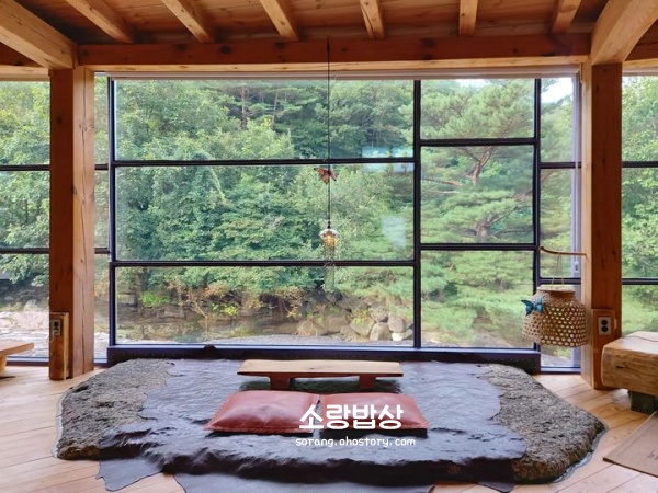 선암계곡 바위 위에 지어진 카페로 산성을 모티브로 지은 건물 외관뿐만 아니라 계곡바위를 자연 그대로 끌어들인 내부 인테리어가 인상적인 카페였던