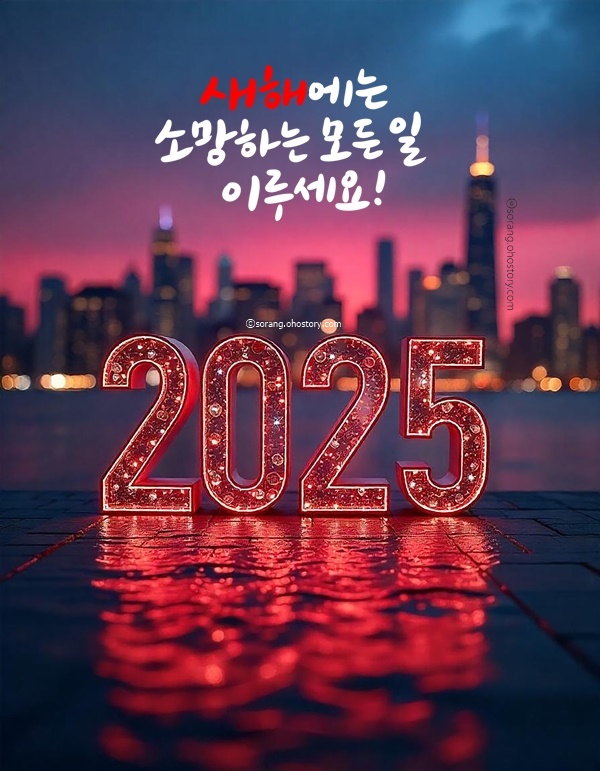 현실적으로 이루어질 수 있는 목표를 설정하고, 작은 것부터 차근차근 이루어가며 성취감을 느끼는 것이 중요합니다. 2025년에는 소망하는 모든 일이 이루어지길 바라며, 가족과 함께 따뜻한 설 명절 보내세요. 새해 복 많이 받으세요.