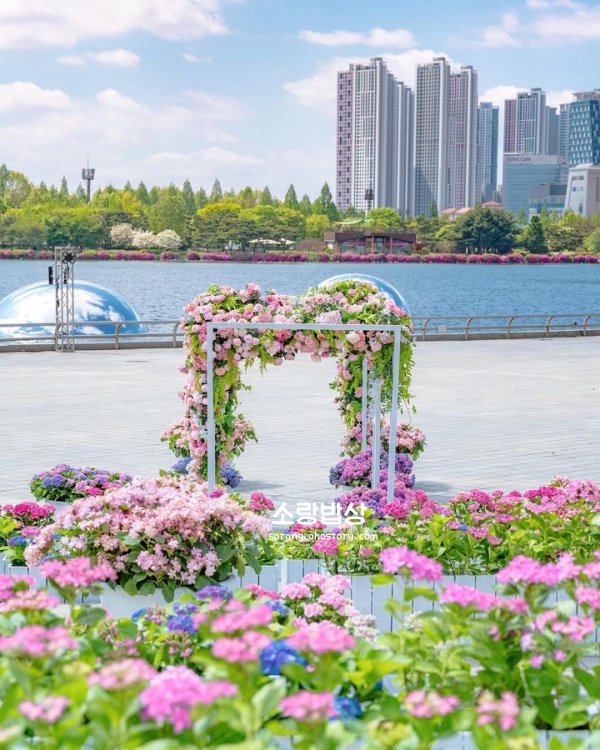 일산호수공원이 이렇게 화려하게 변하는 때는 1년 중 이때뿐이에요. 고양국제꽃박람회가 열리는 5월이면 공원 전체가 꽃의 도시처럼 바뀝니다. 올해 주제는 '꽃, 상상 그리고 향기'. 이름부터 이미 향기롭죠. 국내외 25개국에서 200개가 넘는 화훼 기관과 업체가 참여해 정원부터 실내 전시, 체험까지 꽉 찬 구성이 돋보여요.