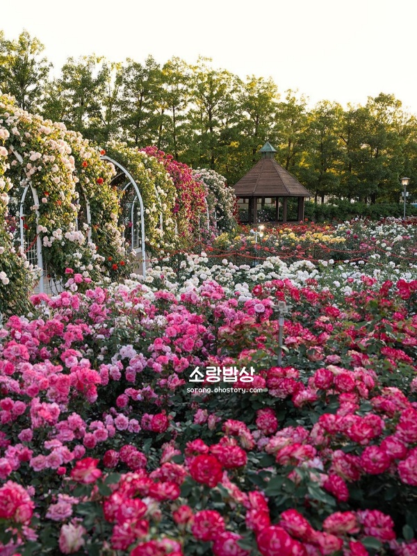 장미만 보는 것도 충분하지만, 로즈 시네마, 버스킹, 게릴라 댄스파티 같은 공연과 체험 프로그램도 진짜 잘 꾸며져 있어요. ‘행운의 황금장미 찾기’ 같은 관람객 참여형 이벤트도 다양하고요. 낮에는 햇살 아래 장미가 반짝이고, 밤에는 조명 아래 로맨틱한 무드가 더해져서 하루 종일 즐겨도 전혀 지루하지 않아요.