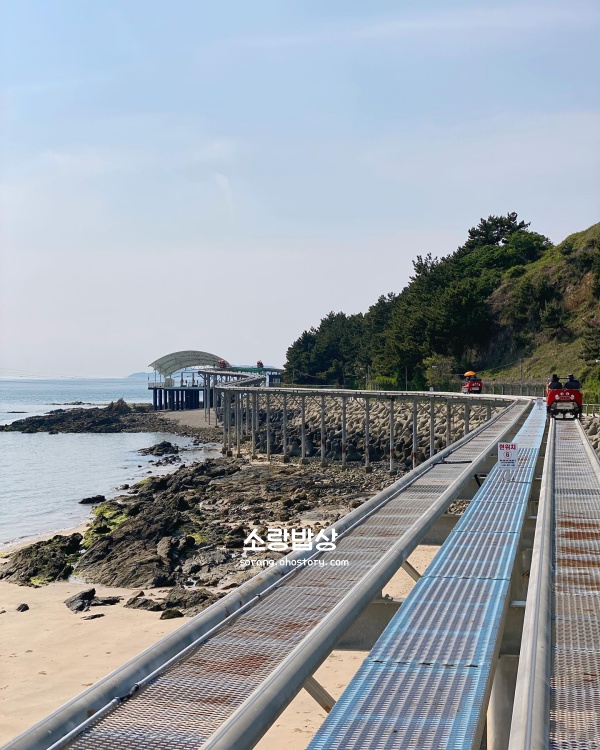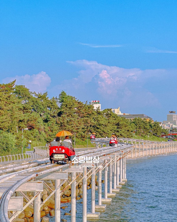 바다 위를 공중 부양하듯 달리는 스카이바이크는 대천 여행에서 결코 빼놓을 수 없는 짜릿한 즐거움입니다. 해수욕장 끝자락에서 출발해 해안선을 따라 설치된 레일을 타고 달리면 발밑으로 찰랑이는 파도와 탁 트인 서해바다가 파노라마처럼 펼쳐지는데, 그 개방감이 정말 상상을 초월하더라고요. 보령 가볼만한곳 베스트 10 중 가장 예약이 치열하고 인기가 많은 시설이라 주말이면 오픈런을 해야 할 정도지만, 레일 위에서 마주하는 바다 풍경을 보고 나면 기다림의 수고가 단번에 보상받는 기분입니다.