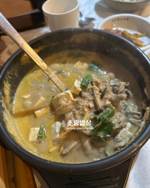 여행의 마무리는 역시 든든한 밥심이죠. 청양까지 와서 고추랑 구기자 들어간 음식을 안 먹고 가면 섭섭하잖아요. 여기 청국장은 냄새가 심하지 않으면서도 구수한 맛이 깊어서 밥 두 공기는 기본으로 비우게 돼요. 밑반찬도 하나하나 정갈해서 집밥 먹는 기분이에요.