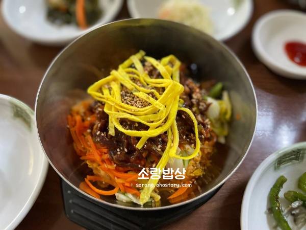 익산 황등면이 전국 3대 비빔밥 산지로 꼽히는 이유가 바로 이 집에 있습니다. 사골 육수로 토렴한 따뜻한 밥 위에 신선한 양념 육회를 풍성하게 얹어 이미 비벼진 채로 내어주는 황등식 비빔밥은, 비빌 필요가 없어 '비빈밥'이라고도 불립니다. 한 입 먹는 순간 왜 사람들이 전국에서 찾아오는지 고개가 끄덕여집니다. 육회 특유의 쫄깃한 식감과 사골 육수의 깊은 감칠맛이 어우러지면서, 비빔밥이 이렇게 따뜻하고 진할 수 있다는 게 새롭게 느껴지는 경험입니다.