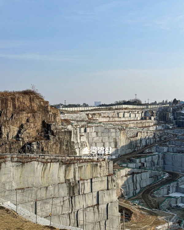 층층이 깎인 채석장의 단층면이 자연이 만든 거대한 조각품처럼 느껴지고, 해 질 무렵 노을빛이 스며드는 시간대에는 더욱 극적인 분위기를 냅니다. 익산 지역 특산물인 황등 고구마를 활용한 시그니처 음료가 인기이며, 내부에서는 채석장을 주제로 한 미디어아트도 감상할 수 있어 음료 한 잔으로 두 가지 경험을 동시에 누릴 수 있습니다. 주말 오후에는 웨이팅이 생길 수 있으니 오전 방문을 추천합니다.